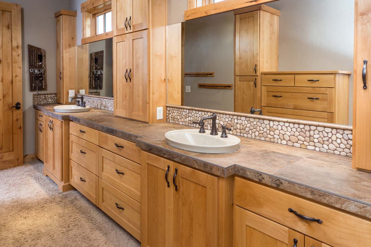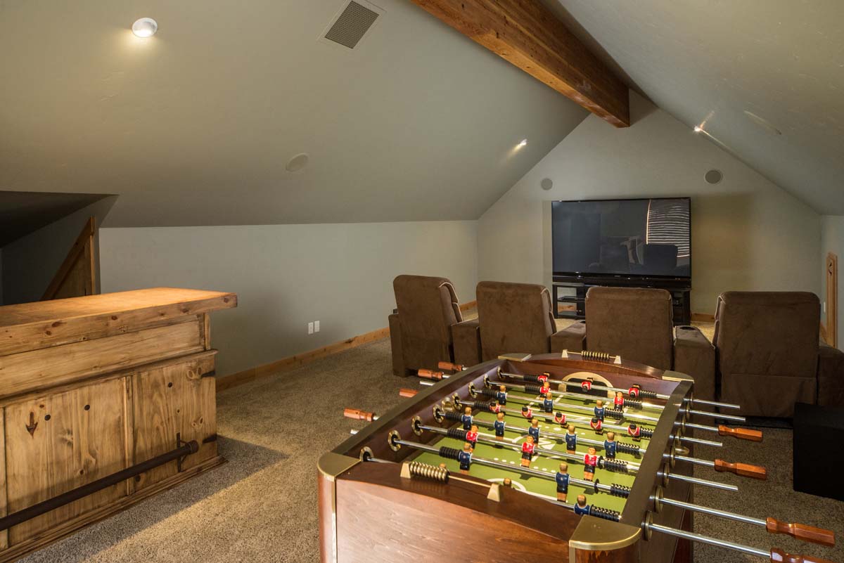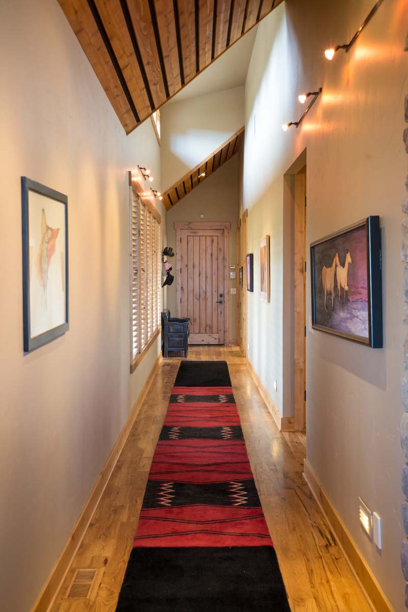 This custom Brasada Ranch home was designed to save a juniper tree estimated to be over 1,000 years old, which is centrally located on the property. The front of the home tucks in and wraps around the juniper tree making it a focal point as you walk up to the entrance. The front also features an L-shaped covered porch, in the old western style, where you can enjoy the morning sun as it rises over spirit rock. As you enter the front door and step into the living room, you’ll be met with a spectacular view of the cascade mountain range, which can be enjoyed from the living room, dining room, kitchen and large deck. Off the entrance is a private office with open beamed ceiling.